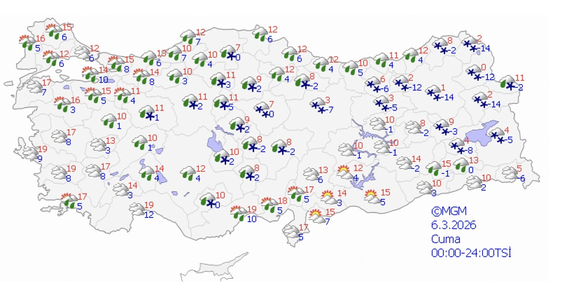 Meteoroloji’nin paylaştığı tahminlere göre 6 Mart Cuma günü özellikle Doğu Anadolu ve İç Anadolu’nun bazı bölgelerinde kar yağışı etkili olacak.